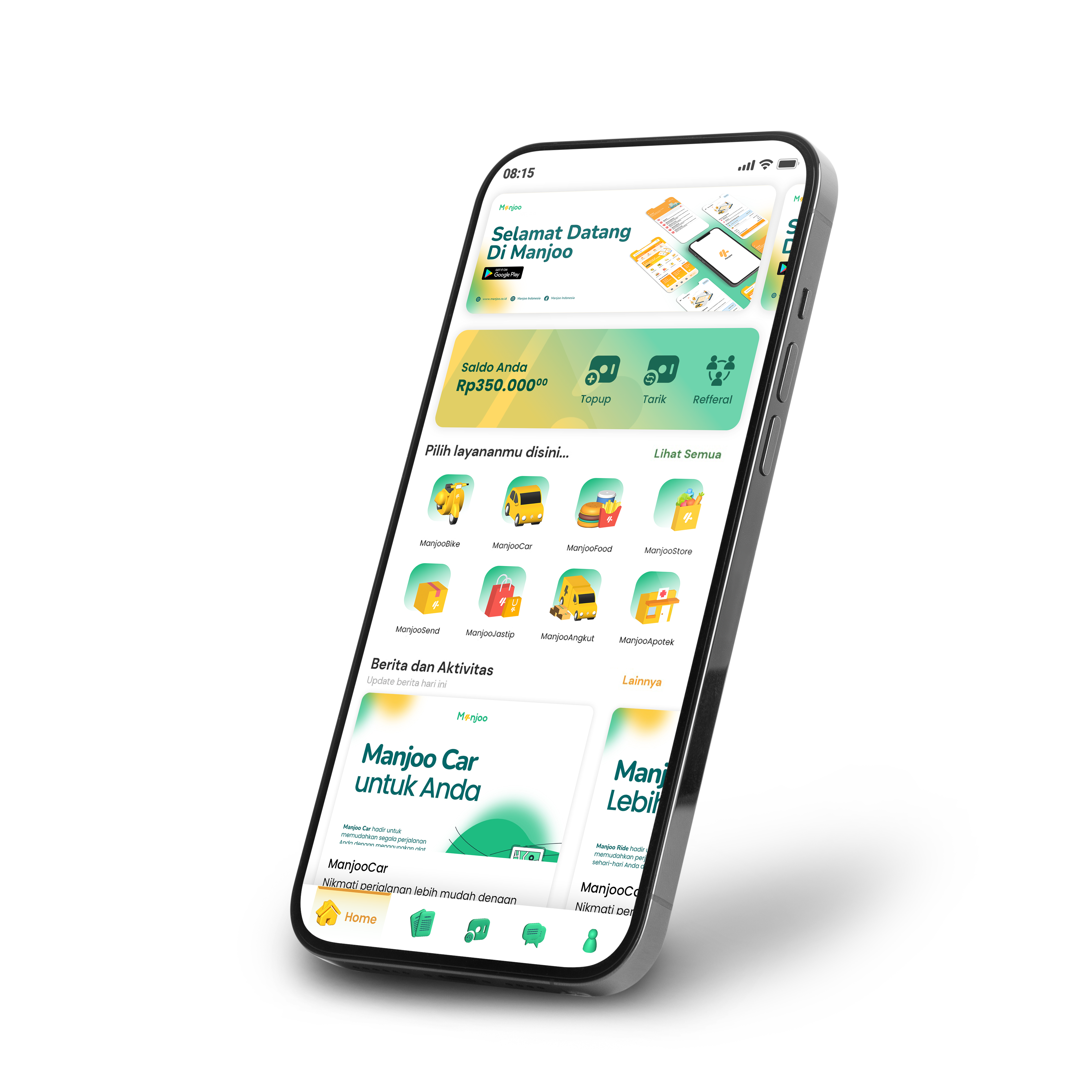 Manjoo adalah aplikasi on-demand, menyediakan layanan transportasi online, pengiriman barang, pesan antar makanan, belanja kebutuhan sehari-hari dan penyedia jasa professional dalam satu mobile apps.